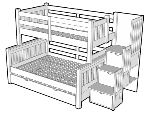 •Requiert 1 matelas simple XL ; 79 x 39, 1 matelas double XL ; 79 x 54 et 1 matelas simple standard ; 74 x 39 (non-inclus).