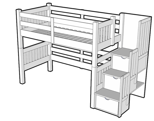 •3 tiroirs dans l’escalier d’accès au lit supérieur.